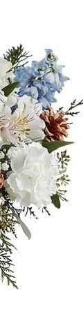 Make someone smile today with the Beauty In Blue Flower Bouquet. A fabulous gift for birthdays, wedding anniversaries, get well wishes, house-warmings, and corporate events, this versatile floral arrangement complements every occasion. With 4 white roses, white alstroemeria, white gypsophila, bright blue delphinium, and a sprinkling of seasonal green ferns, it is a striking display of natural beauty.