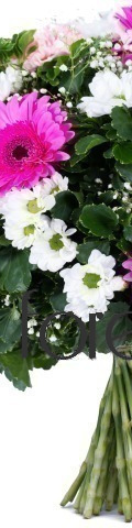 Make someone smile today with the Pink Passion arrangement. A beautiful floral gift with inimitable style, it features 5 deep pink gerberas, 7 soft pink carnations, pure white chrysanthemum sprays, and white baby-breath gypsophila. Expertly handtied to create a bouquet of natural beauty, it is the perfect choice for any occasion.