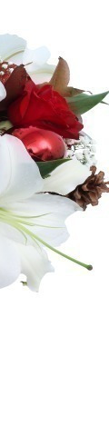 4 White Lilies, 5 Red Roses, Gypsophilia, 4 Pine Cones, 4 Red Baubles